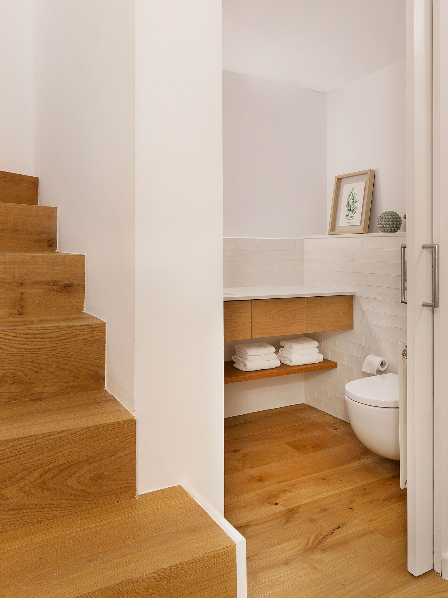 Sota l’escala del pati, s’hi ubicava un bany. És per aquest motiu que es planteja un nou bany en planta baixa amb accés des del rebedor. Aquest, complirà amb els requisits d’accessibilitat segons el decret vigent d’accessibilitat.
