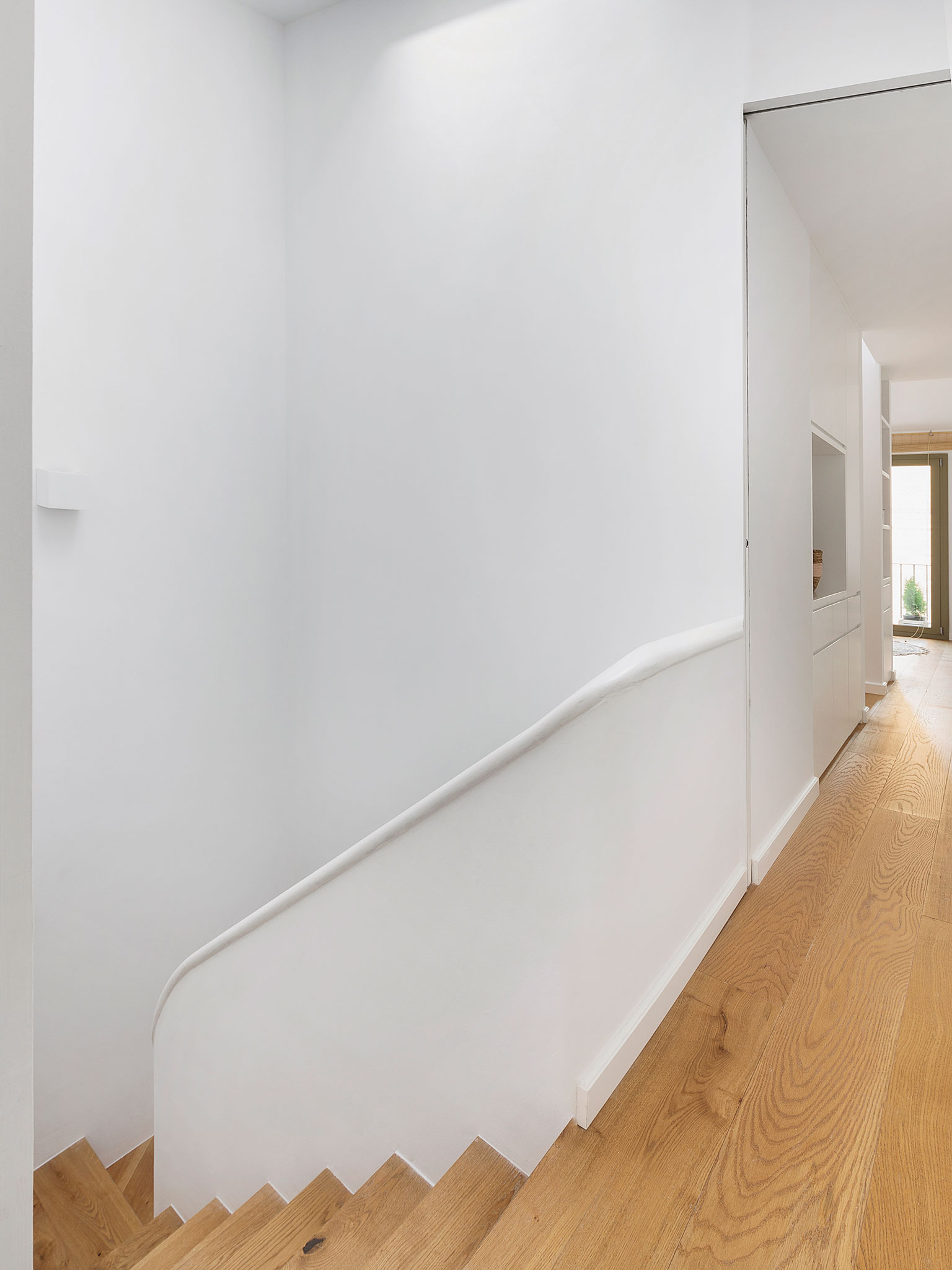 El projecte genera un espai habitable (el màxim d’obert) en planta baixa. Aquest espai és destinat a garantir l’ ús diürn que es fa d’una vivenda, amb accés directe des del carrer i amb comunicació amb el pati interior de parcel.la. La planta primera, continua sent destinada a planta d’ús nocturn, mantenint la distribució a banda i banda de l’escala central, el petit balcó en façana principal i la terrassa existent donant al pati interior.