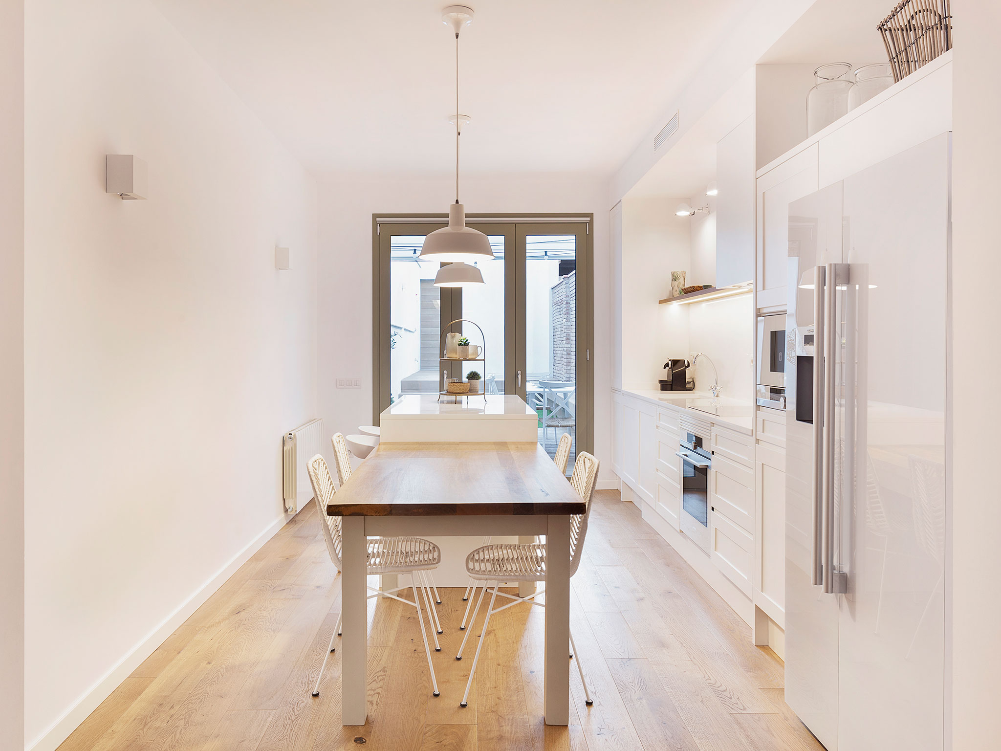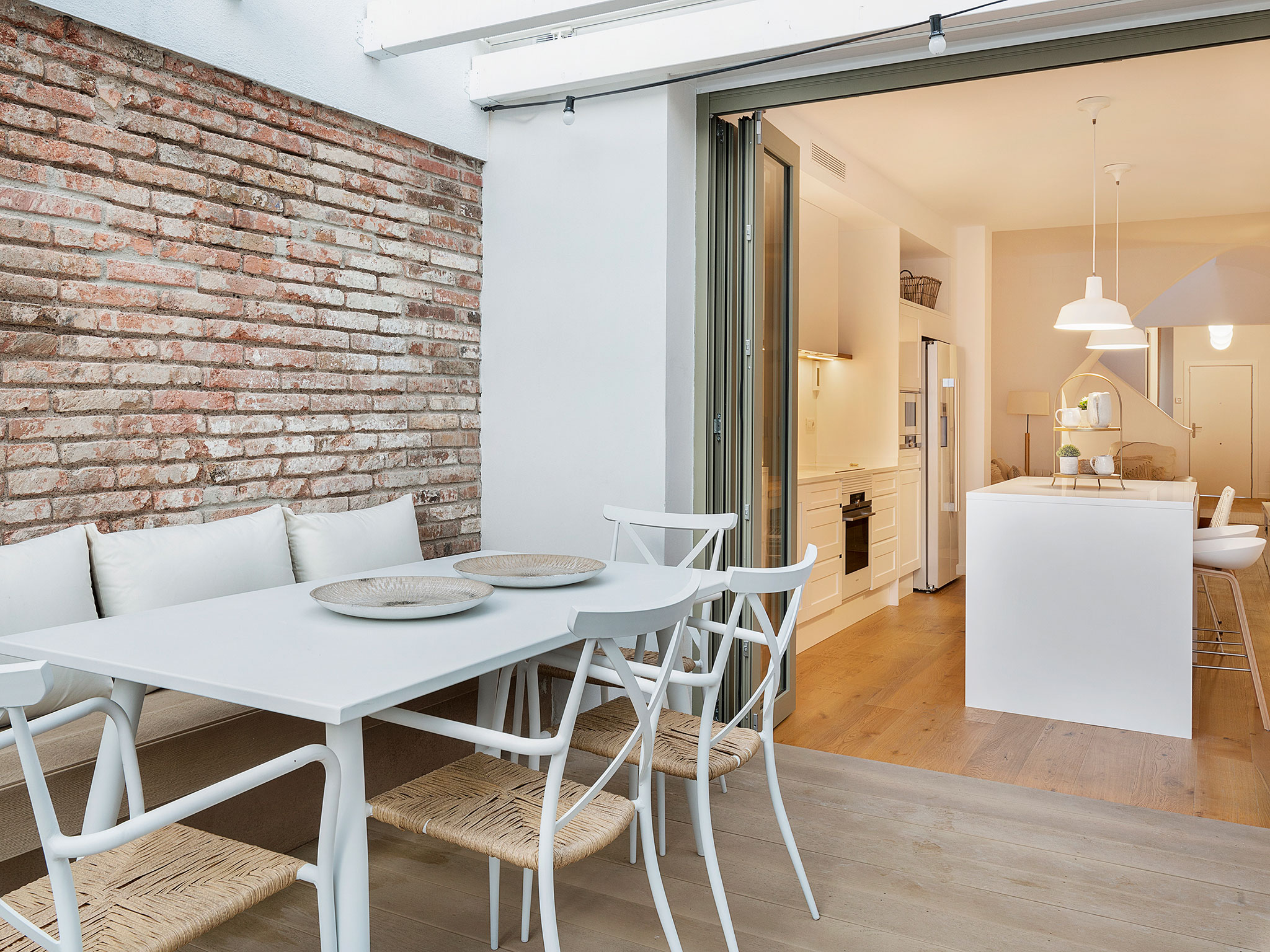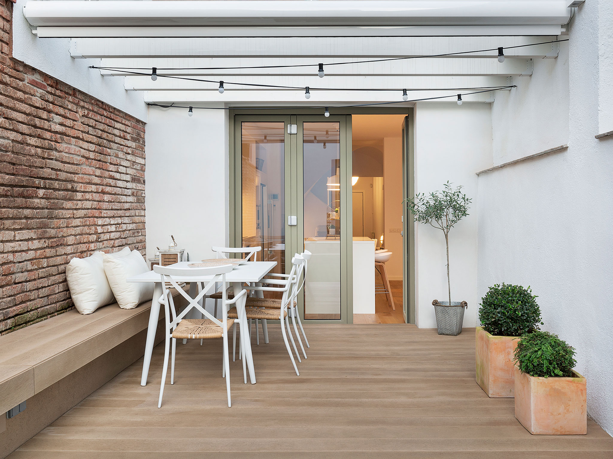 La planta baixa es reforma treient la majoria dels envans existents i distribuint de nou les estances. La intenció clara és crear espais més diàfans i oberts a la façana del pati.