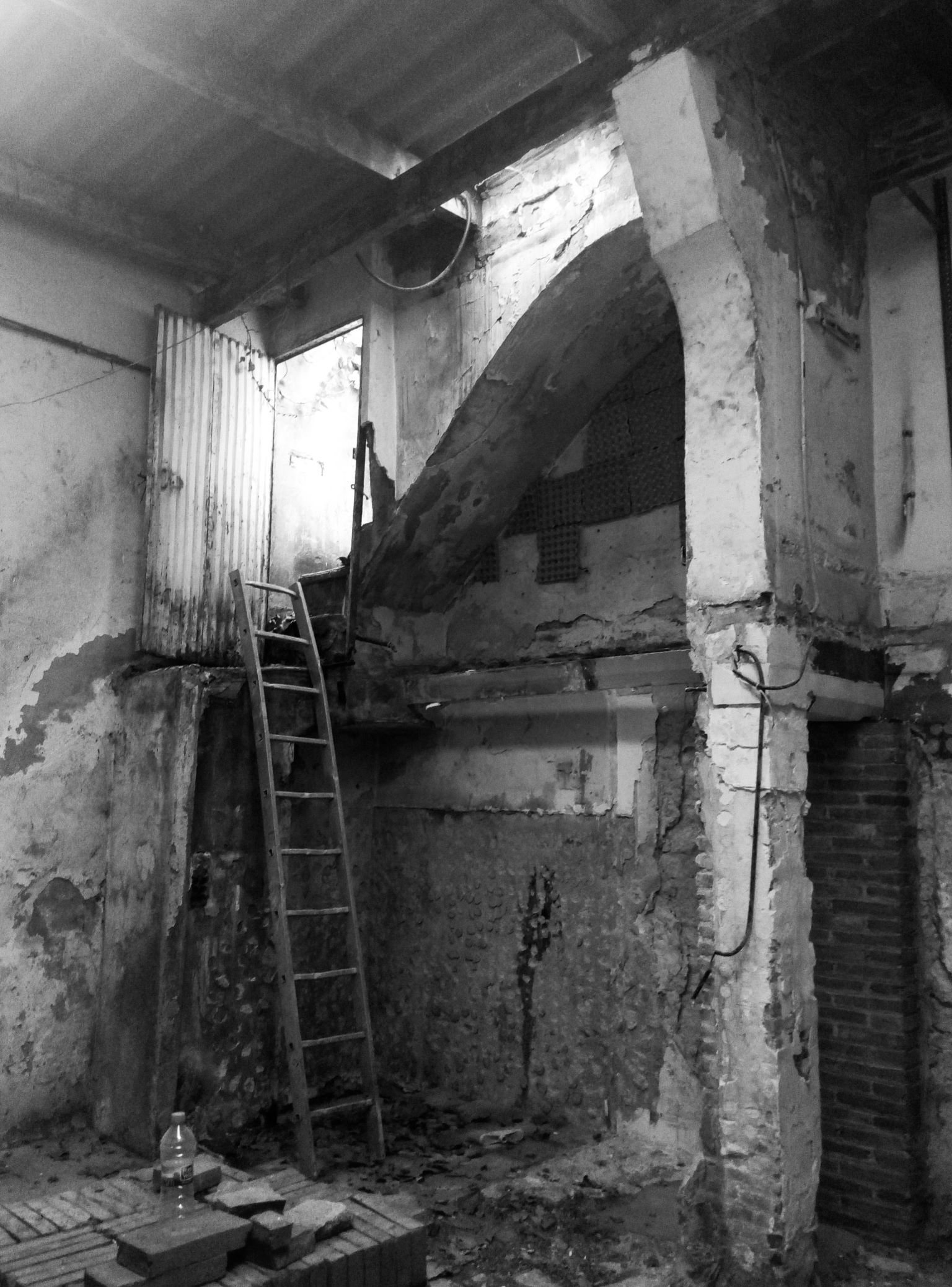 En primer lloc es va plantejar fer una rehabilitació de l’acabat de coberta + façana. Posteriorment, i amb la voluntat de poder tornar donar activitat al local, s’hi van realitzar actuacions interiors d’adequació interior del local per a ús administratiu amb divisions i sanitaris adaptats. Finalment també es plantejà realitzar un nou altell i escala d’accés a aquest, just a l’entrada de part de la nau.